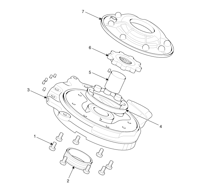 6. Ведомая шестерня 7. Корпус масляного насоса |