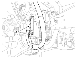 Снимите фиксирующий зажим проводки на кронштейне после снятия разъема масляного насоса (А).