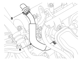 Вставьте тонкую палочку (А) в клапан PCV (В) со стороны резьбы, чтобы проверить движение плунжера.