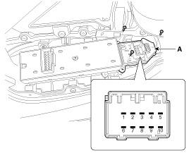 Отсоедините разъем и снимите переключатель наружного зеркала заднего вида (А), предварительно вывернув винты.