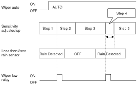 обнаружен (сигнал Rain Detected от датчика дождя), и переключатель стеклоочистителей