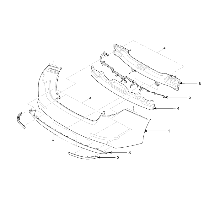 5. Жгут проводов 6. Балка заднего бампера в сборе |