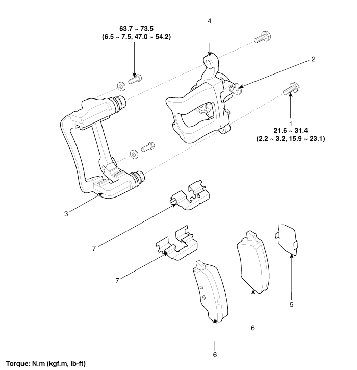 2. Прокачной винт 3. Держатель суппорта 4. Корпус суппорта |
