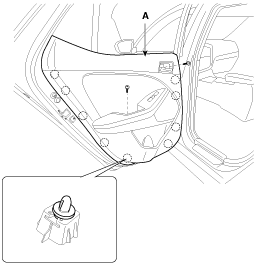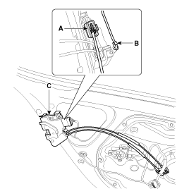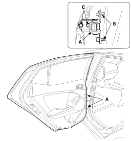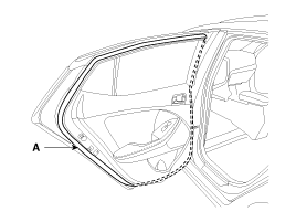 Отсоедините зажимы, затем снимите боковой уплотнитель задней двери (A).