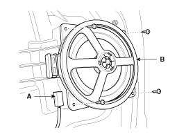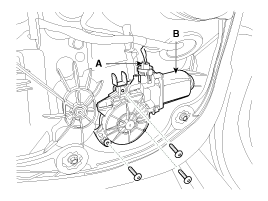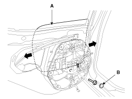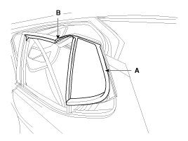 Снимите направляющую стекла (B), а затем снимите неподвижное стекло задней двери (A).