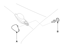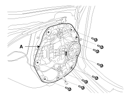 Ослабив крепежный винт, снимите внешний уплотнитель (А) ремня безопасности задней двери.