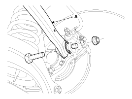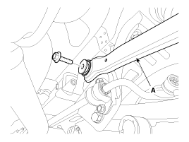 Ослабьте болт крепления продольного рычага, затем снимите продольный рычаг (А).
