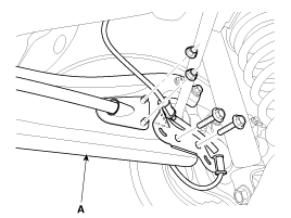 Отсоедините разъем датчика скорости вращения колеса (А).