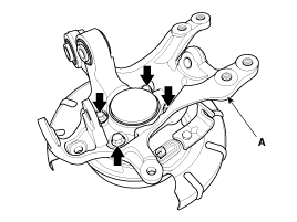 Ослабьте крепление подшипника ступицы, а затем снимите подшипник ступицы с поворотного кулака (А).