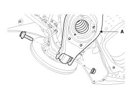Ослабьте болт и гайку и снимите задний нижний рычаг (А) с задней оси.