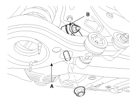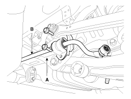 Ослабьте гайку и снимите заднюю стойку стабилизатора (В) с заднего нижнего рычага (А).