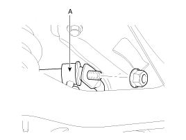 Ослабьте гайку и снимите тягу стабилизатора (А) с заднего стабилизатора поперечной устойчивости.