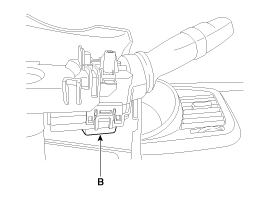 Отсоедините разъем переключателя освещения (А) и разъем переключателя стеклоочистителя и омывателя (В).