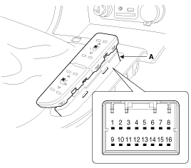Снимите разъемы выключателя обогревателя сиденья с верхней крышки напольной консоли (А).