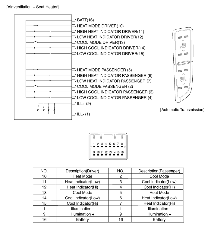 Проверка переключателя обогревателя переднего сиденья 1. Отсоедините отрицательную (-) клемму аккумуляторной батареи. 2. Снимите верхнюю крышку напольной консоли. (см. группу БД - "Консоль") 3. Снять разъемы выключателя обогрева сидений...