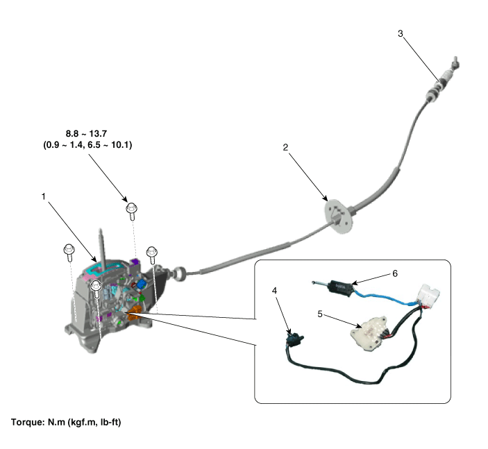 5. Корпус переключателя ручного режима 6. Соленоид блокировки переключения передач |
