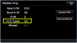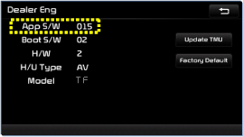 Проверьте версию TMU ("App S/W") на экране головного устройства.
