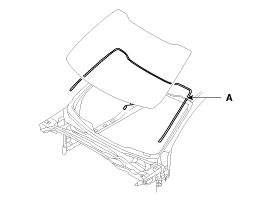 Установите боковой молдинг ветрового стекла (А) и крепления.