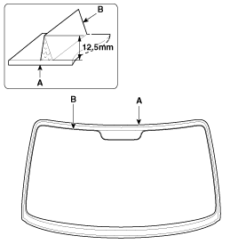 полоска клея (B) по краю ветрового стекла (A)