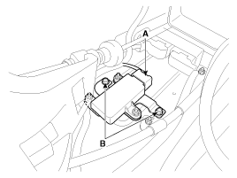 Отсоедините разъем датчика скорости рыскания и бокового ускорения (A).