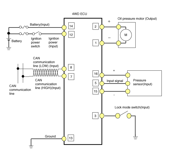 Kia Sorento: электрическая схема ЭБУ 4WD