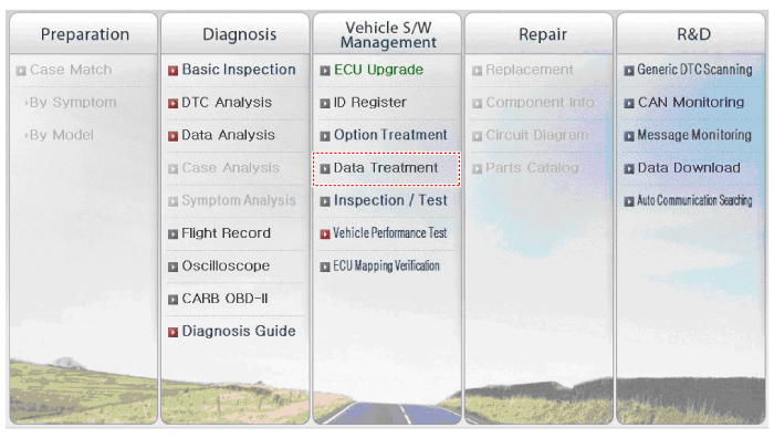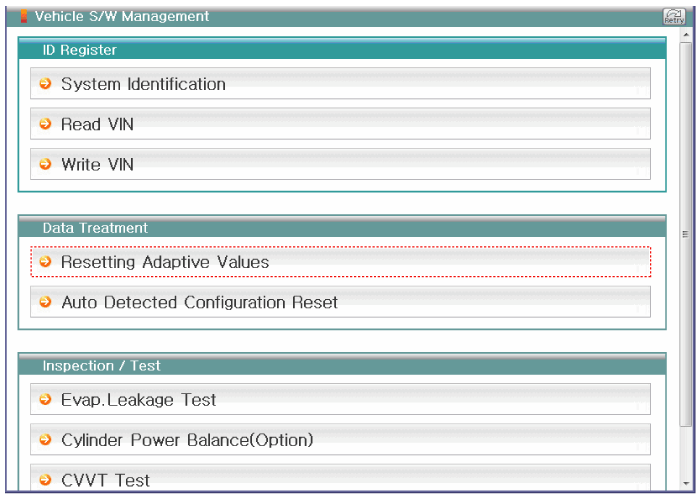Выберите «Обработка данных», чтобы сбросить адаптивное значение ETC.