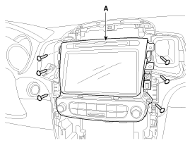Снимите головное устройство AVN (A) после ослабления крепежных винтов.