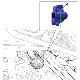 Вставьте стопорный штифт (A) в BSM, чтобы удерживать звездочку в контрольной точке.