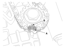 Установите натяжитель цепи уравновешивающего вала (B), затем снимите стопор.