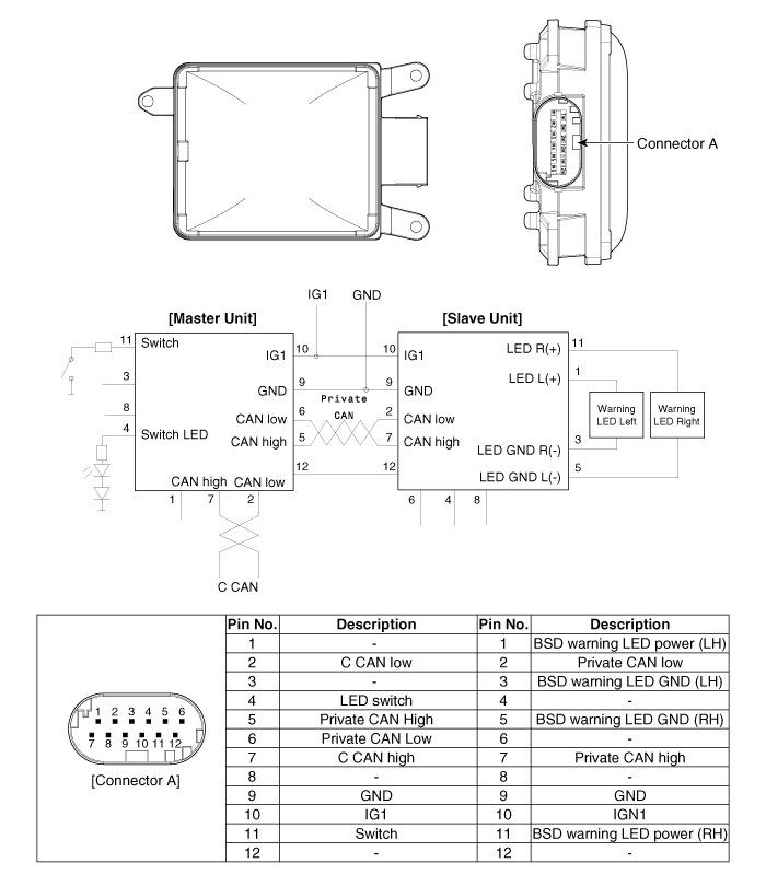 Kia Sorento: электрическая схема блока обнаружения слепых зон