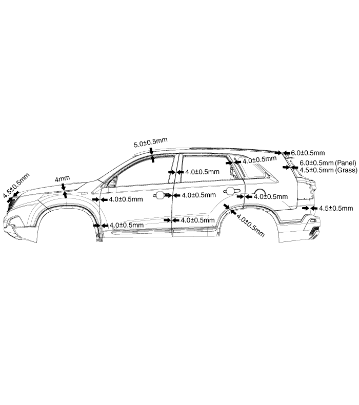 Kia Sorento: Зазоры в панелях кузова