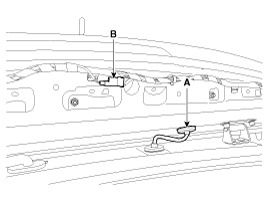 С помощью отвертки или съемника снимите задний молдинг крыши (А). и передний молдинг крыши (B).