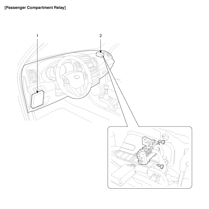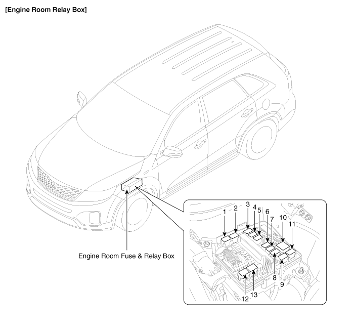 XM второго поколения (2011-2023 гг.) / Kia Sorento XM 2011-2023 Руководство по ремонту / Электрическая система кузова / Предохранители и реле / Расположение компонентов