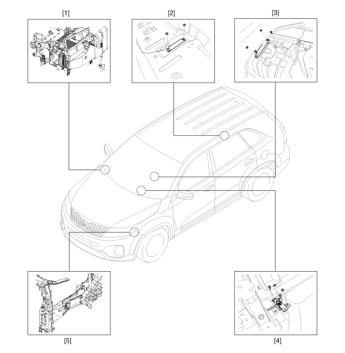 XM второго поколения (2011-2023 гг.) / Kia Sorento XM 2011-2023 Руководство по ремонту / Электрическая система кузова / Система смарт-ключей / Расположение компонентов (1)