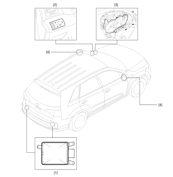 XM второго поколения (2011-2023 гг.) / Kia Sorento XM 2011-2023 Руководство по ремонту / Электрическая система кузова / Система обнаружения слепых зон / Компоненты