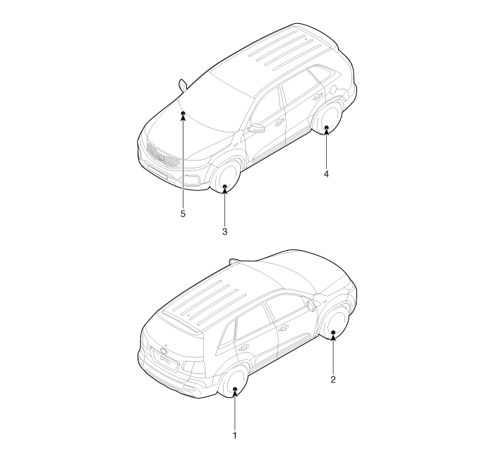 2. Датчик TPMS (FR) 3. Датчик TPMS (FL) |