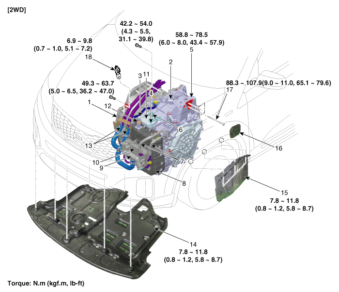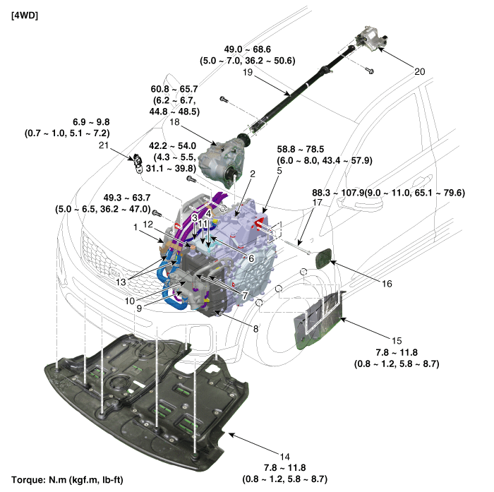 XM второго поколения (2011-2023 гг.) / Kia Sorento XM 2011-2023 Руководство по ремонту / Автоматическая трансмиссия / Автоматическая коробка передач / Расположение компонентов