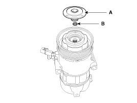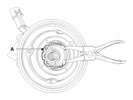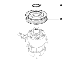 Снимите шкив (В) после снятия стопорного кольца (А) с помощью