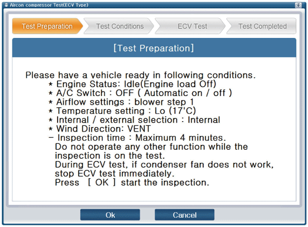 Подключите GDS к автомобилю и выберите «Тест компрессора кондиционера (ECV)».