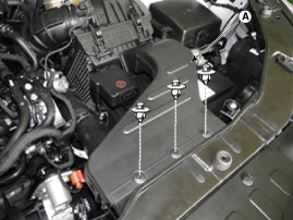 Отсоедините отрицательную (-) клемму аккумуляторной батареи.