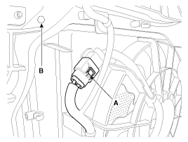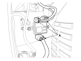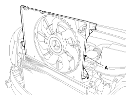 Отсоедините разъем модуля управления вентилятором охлаждения (А).