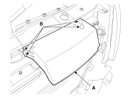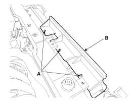 Снимите щиток воздухозаборника (А) после ослабления винтов (В).