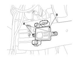 Снимите модуль (В) после ослабления болтов (А).