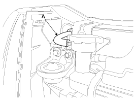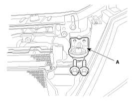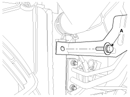 Снимите болт крепления кронштейна трубопровода высокого давления кондиционера (А).