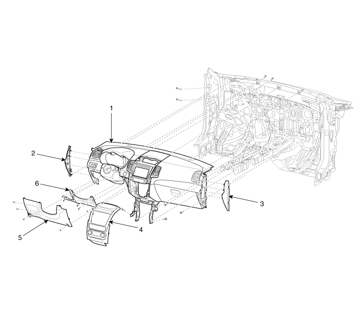 Kia Sorento: Crash Pad Components - Exterior - Body (Interior and Exterior) - Kia Sorento XM 2011-2023 Service Manual Kia Sorento: компоненты аварийной подушки