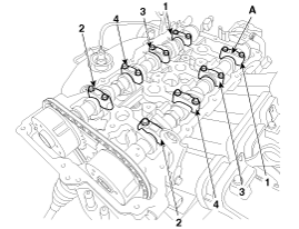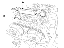 Отсоедините впускной CVVT в сборе (A) и выпускной CVVT в сборе (B).