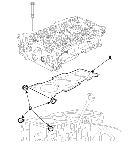 Установите прокладку головки блока цилиндров (А) на блок цилиндров.