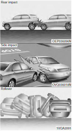 В зависимости от силы удара и использования ремней безопасности SRSCM (SRS Control Модуль) управляет раскрытием подушек безопасности. Неправильное пристегивание ремней безопасности может увеличить риск или тяжесть травм при аварии.