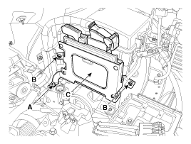 Отвернув установочные гайки) и винты (В), снимите блок управления двигателем (С) с кронштейна.