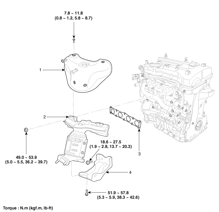 Kia Sorento: Exhaust Manifold Components - Intake And Exhaust System - Engine Mechanical System - Kia Sorento XM 2011-2023 Service Manual Kia Sorento: Компоненты выпускного коллектора